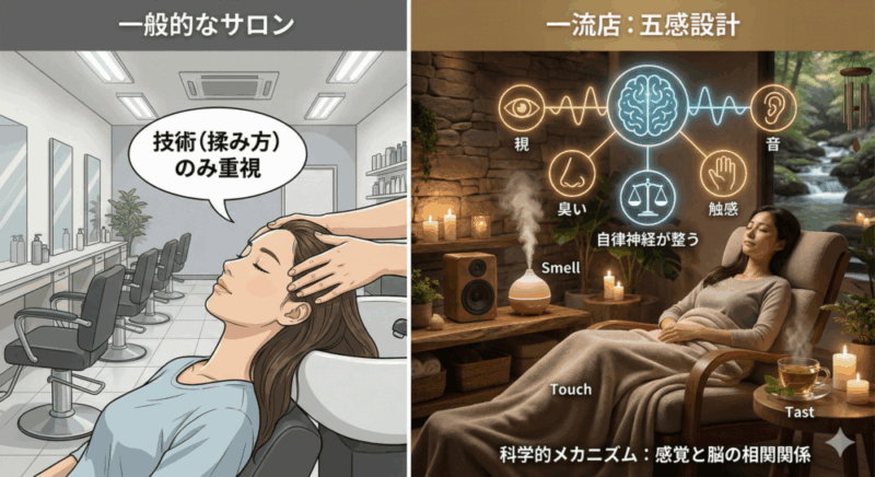 世の中には、数多くのヘッドスパ専門店が存在します。しかし、予約が数ヶ月待ちとなる一流店と、一般的なサロンの間には、決定的な違いが存在します。それは、単に「技術(揉み方)」の優劣だけではありません。