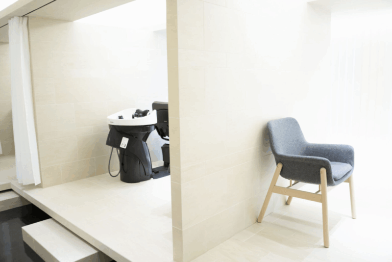 awin head spaの内装は、中目黒の隠れ家のような個室サロンで、周りを気にせずゆったり過ごせるのが魅力。モダンで落ち着いた空間に、アロマの優しい香りと柔らかな照明が広がり、癒しの時間を演出します。シャワーヘッドスパ専用のベッドはフルフラットで、施術中はまるで夢心地。