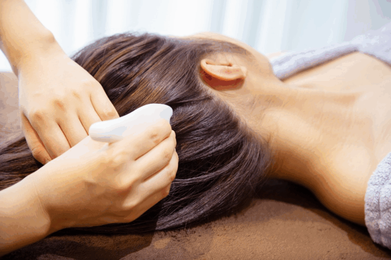 myuのメニューは、カッサを使用した頭皮マッサージを中心に、眼精疲労の解消やリフトアップ効果も期待できるコースが充実しています。