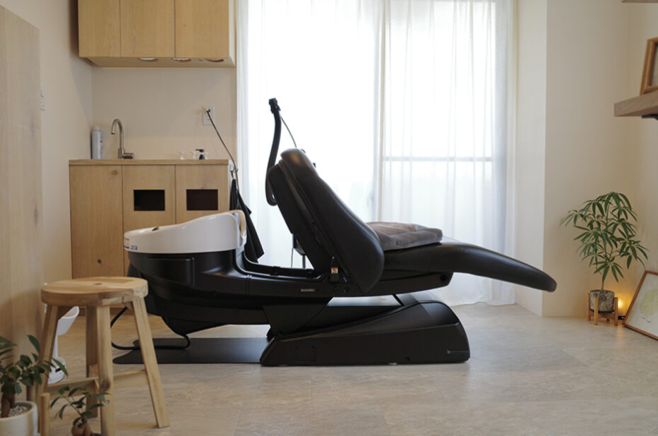 RADISSON KASHIの内装は、大人女性向けラグジュアリーな隠れ家空間。1席のみ完全個室の最上位モデル・ヒーター付きフルフラットYUMEシャンプー台で寝心地抜群、柔らかな照明とアロマが心を軽くします。診断に基づくパーソナルアイテムが並び、プライベート感たっぷり。