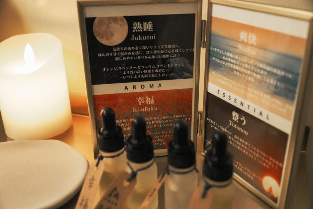 施術は完全個室(または半個室)で行われるため、周りの目を気にせずリラックスできます。照明は少し暗めに設定されており、心地よいBGMと季節感のあるアロマの香りが漂います。
